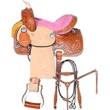 Western Leather Youth Child Horse Pony Ranch Saddle Floral Tooled Handmade 8" 10" 12" 13" 14" Tack Set HRWS-066