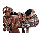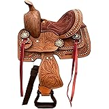 $45.99 (as of December 15, 2025 07:56 GMT +00:00 - More infoProduct prices and availability are accurate as of the date/time indicated and are subject to change. Any price and availability information displayed on [relevant Amazon Site(s), as applicable] at the time of purchase will apply to the purchase of this product.)Pink Western Miniature Horse Trail Mini Saddle Floral Tooled Tack Set Seat 8" for Kids Youth Children with Headstall Breast Collar Reins KIDS-023